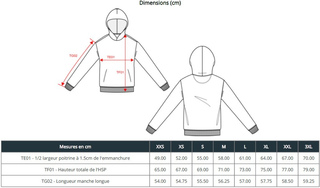| Taille | XS, S, M, L, XL, XXL, 3XL |