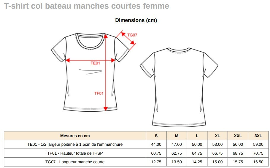 | Taille | S, M, L, XL, XXL, 3XL |