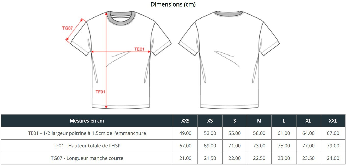 | Taille | XXS, XS, S, M, L, XL, XXL |