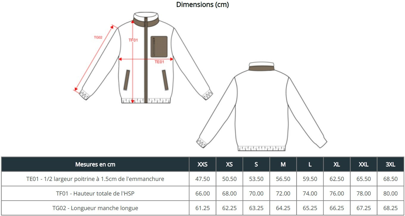 | Taille | XXS, XS, S, M, L, XL, XXL, 3XL |